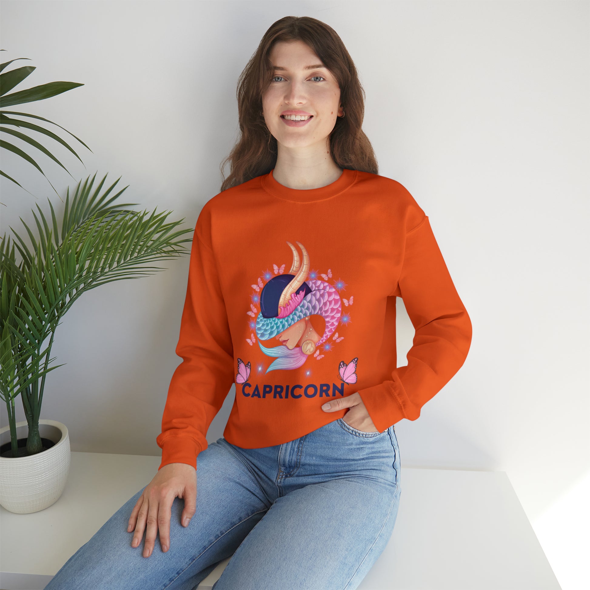 Our ♑️ Capricorn ♑️ Zodiac Sign-Sweatshirts, can be a fashionable choice and a way to express one's personal style and interests. Wearing this sweatshirt can serve as a symbol of personal identity, reflecting a strong sense of self and affinity towars the qualities and symbolism of the "Capricorn" zodiac sign.